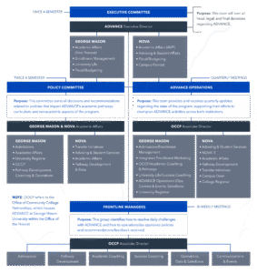 19 NOVA and George Mason’s official name for the committee focused on academic and nonacademic policies that impact ADVANCE students is the curriculum committee. We’ve renamed it for clarity.