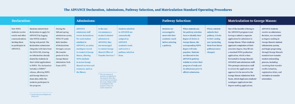 29 The vast majority of students are admitted to the program. Most who are not have accumulated too many college credits to participate in the program’s clear 2+2 course sequences